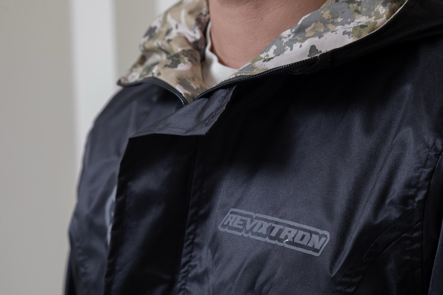 Cada conjunto Revixtron está sellado para resistir. Las costuras, cremalleras y solapas se refuerzan con la misma obsesión con la que afinamos una máquina: sin margen para filtraciones.
