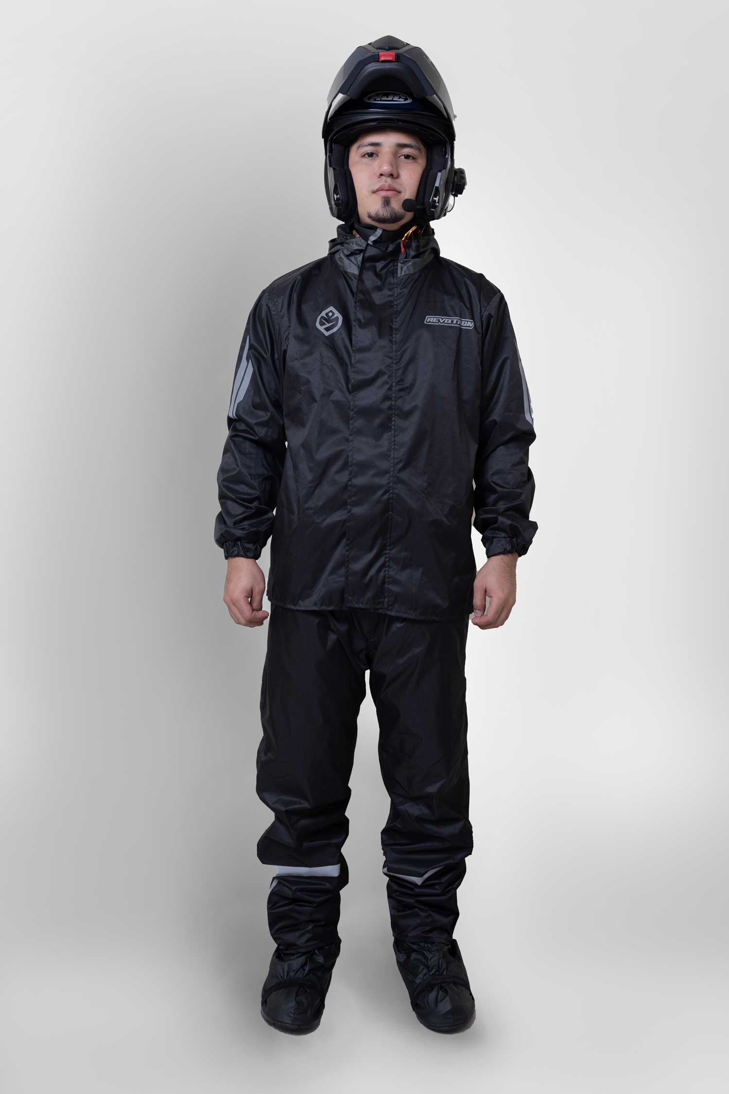 Cada conjunto Revixtron está sellado para resistir. Las costuras, cremalleras y solapas se refuerzan con la misma obsesión con la que afinamos una máquina: sin margen para filtraciones.