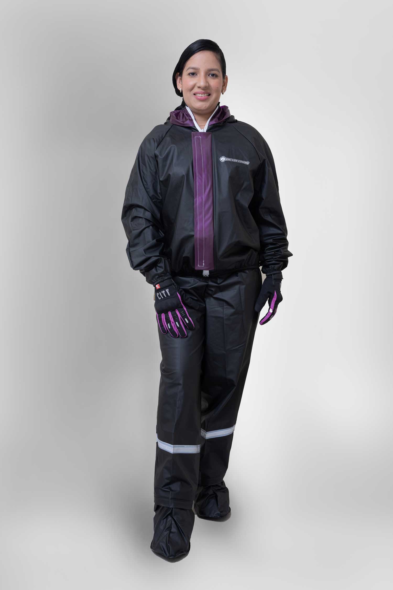 Este conjunto está sellado con cuidado para evitar filtraciones, está fabricado con costuras reforzadas en cremalleras y solapas para que tengas una protección completa contra la lluvia.