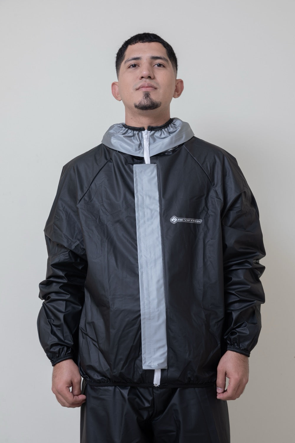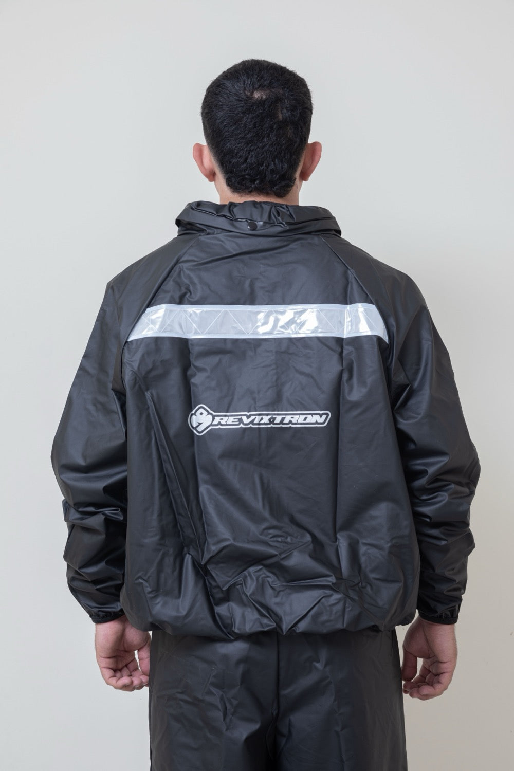 Este conjunto está sellado con cuidado para evitar filtraciones, está fabricado con costuras reforzadas en cremalleras y solapas para que tengas una protección completa contra la lluvia.