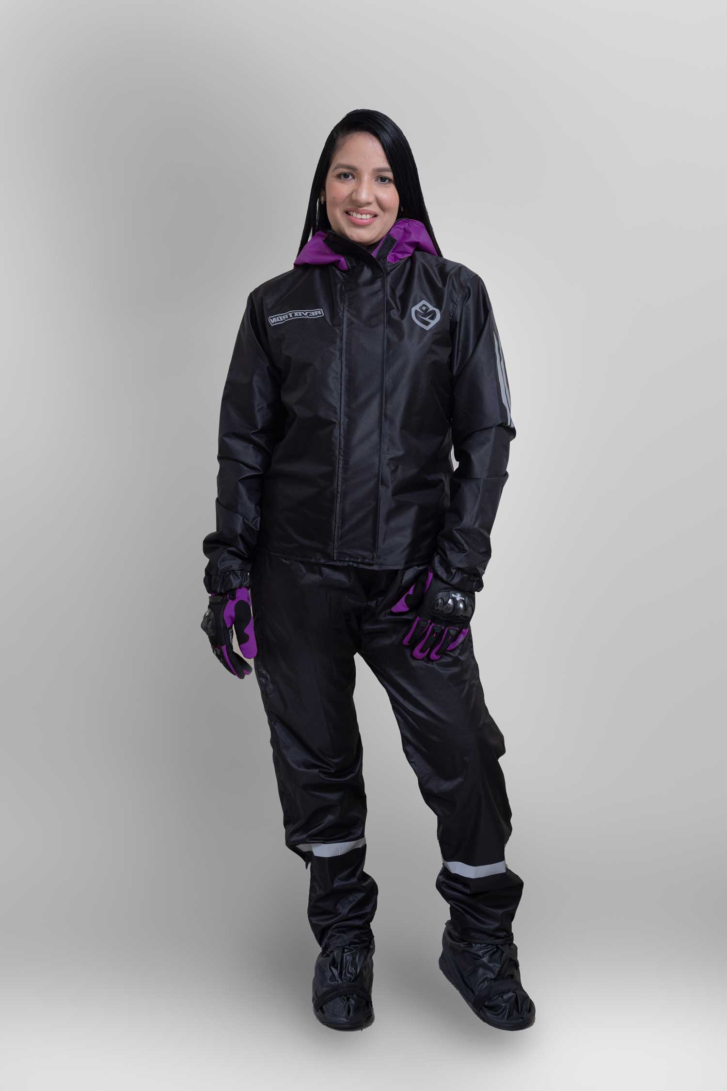 Este impermeable tipo sudadera está pensado para mujeres que ruedan sin excusas, incluso bajo la lluvia. Hecho en poliéster con base en PVC y forro liviano, te protege sin hacerte sudar la gota fría.